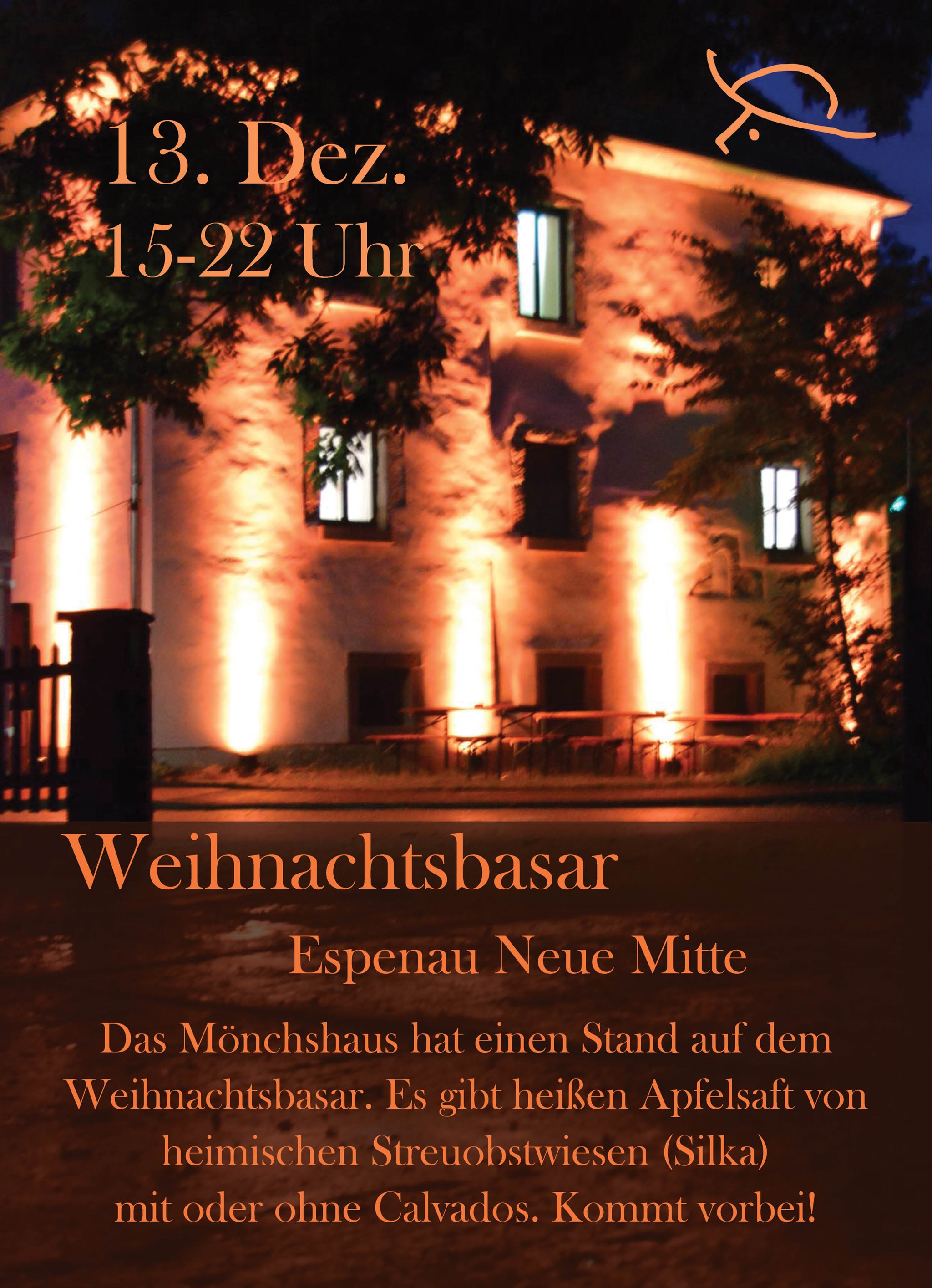 Besucht uns an unserem Stand am Espenauer Weihnachtsbasar und genießt einen heißen Apfelsaft mit oder ohne Calvados!