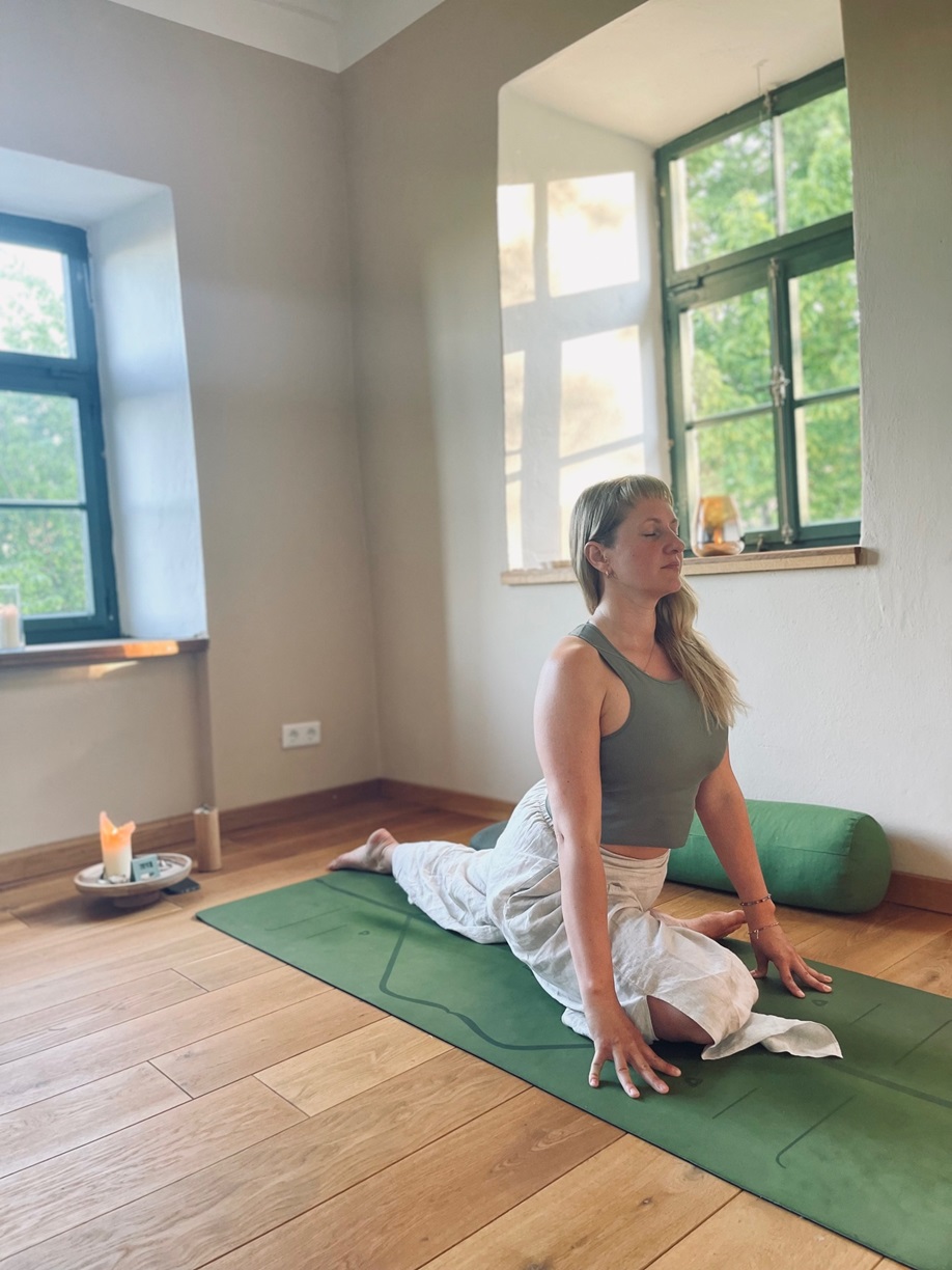 Neben meiner Leidenschaft für Yoga liebe ich es, Zeit in der Natur zu verbringen, zu reisen und neue Orte sowie neue Perspektiven zu entdecken. Als Mama von zwei wundervollen Kindern weiß ich, wie wichtig es ist, sich immer wieder kleine Oasen der Ruhe zu schaffen – und genau diese möchte ich in meinen Kursen anbieten.